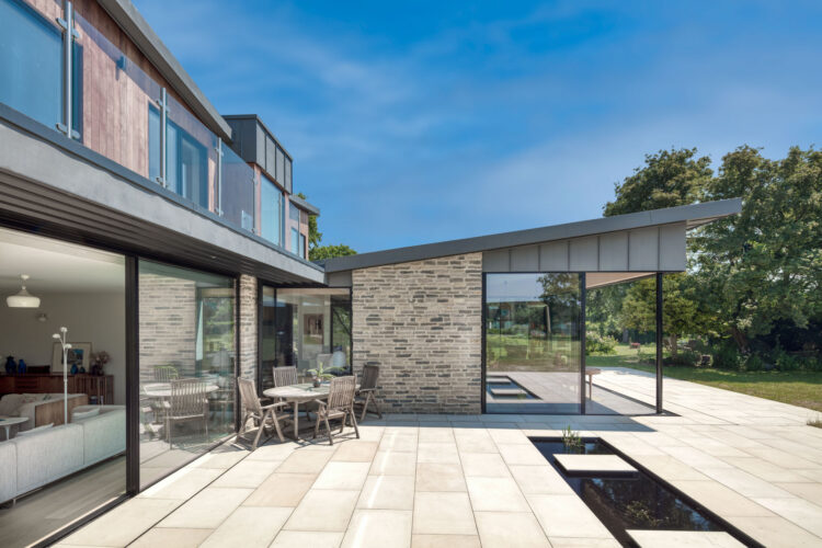 Create the wow effect with Ultraline architectural floating corner sliding doors opening up the corner of the room